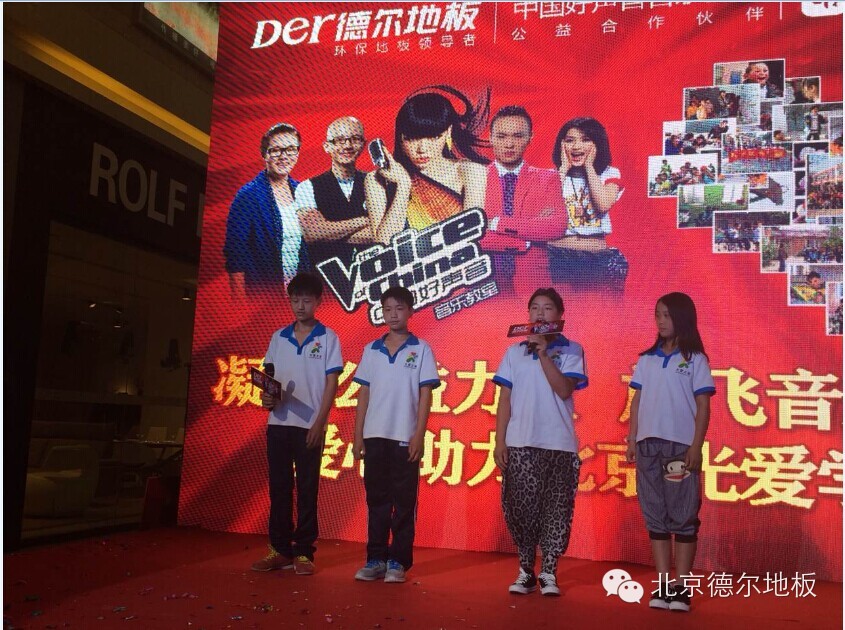 “凝聚公益力量,放飞音乐梦想”,6月21日,德尔地板与居然之家集团以及星空传媒旗下好声音音乐教室携手,在北京开展了一场捐建北京光爱学校音乐教室的公益活动,“小刘欢”刘悦登台献唱,北京光爱学校师生倾情演出,在北京居然之家北四环店掀起一股公益活动热潮。