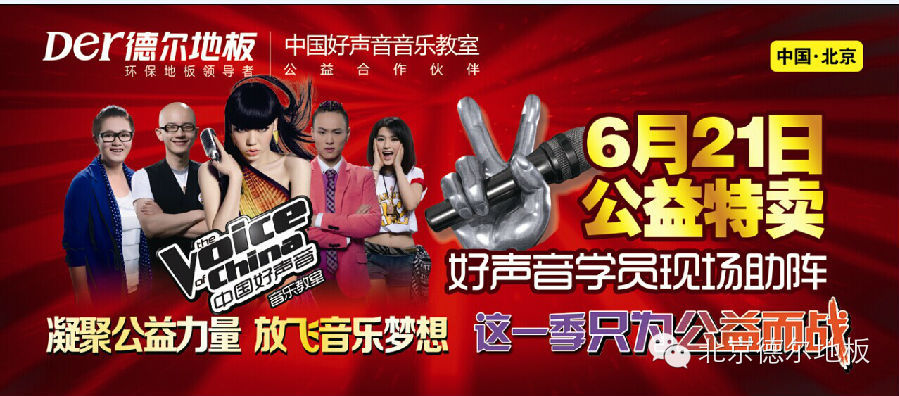 为了扩大活动影响力,德尔地板还举办了十多场“环保好地板,约惠最强音”大型营销活动,不但推出全新的产品和多款特价产品,更邀请众多中国好声音人气学员,携手德尔地板奔赴全国各地献爱心,德尔地板在活动期间每销售1平米都将捐助一定金额给好声音音乐教室项目,消费者不仅可以在购买品质产品的同时奉献自己的一份爱心,同时更能近距离感受好声音人气学员的风采。